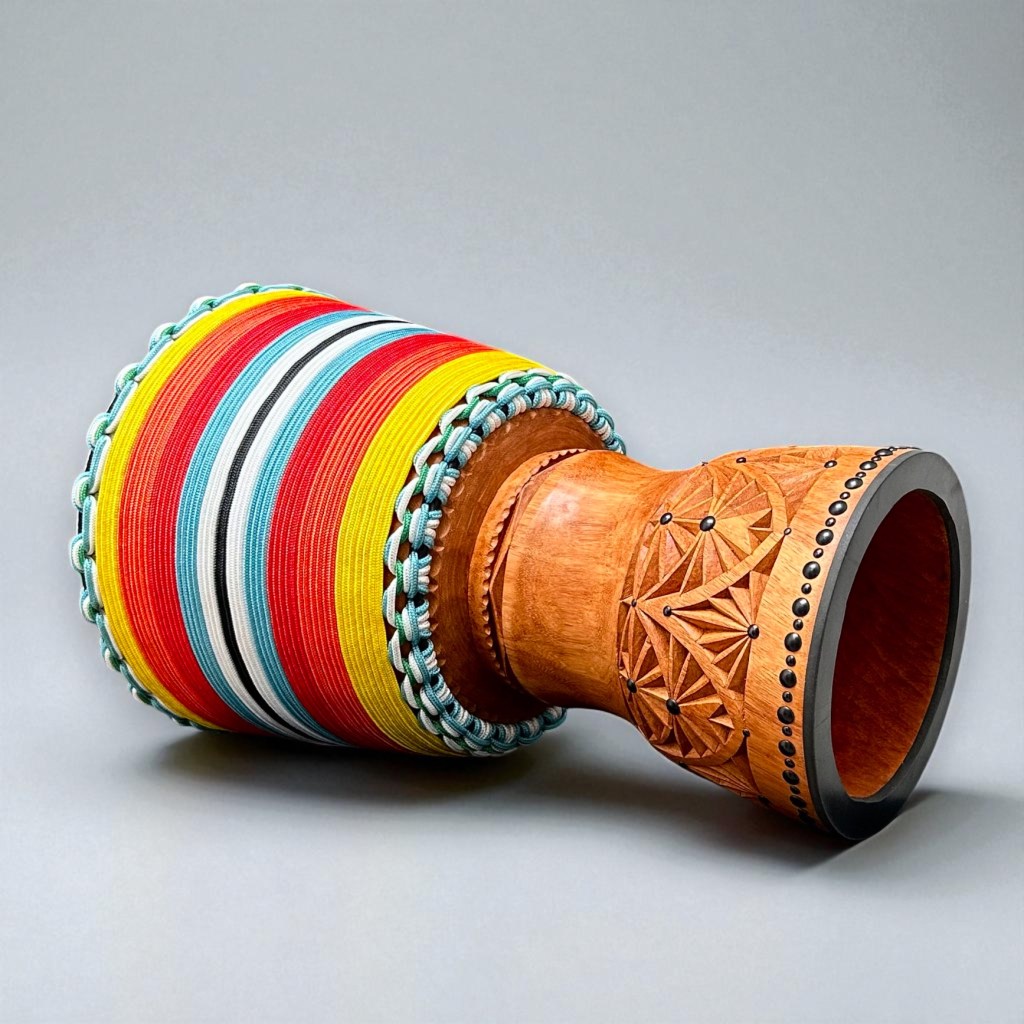 Djembe Origin – GuineaWood Type – LenkeSkin Type – Medium Thick Goat SpottedSkin Origin – MaliWeight – 12kgDimensions – 35cm x 62.5cmPrice – £675